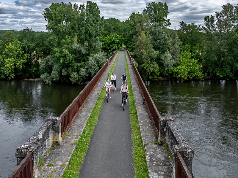 Vous quitterez Sarlat en douceur par une voie verte tracée sur une ancienne voie ferrée, le long de la Vallée de la Dordogne, elle vous mènera jusqu’à Cazoulès, à quelques kilomètres de Souillac. Ce parcours facile et sécurisé vous offrira un paysage varié, à l’ombre des falaises, entre forêts, petits villages des bords de Dordogne et campagne.